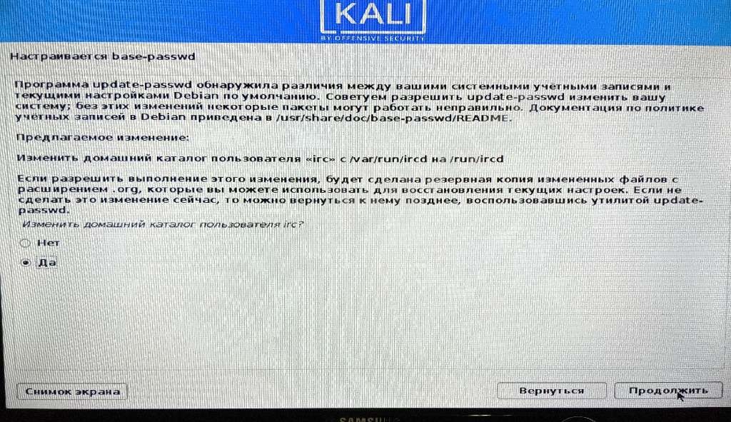 Домашний каталог не изменяю все равно появляется ошибка. Фото каждого шага загрузки ОС прикрепил.