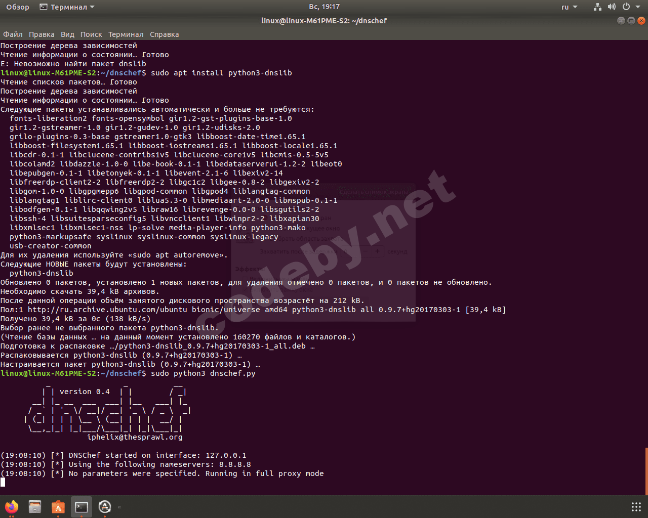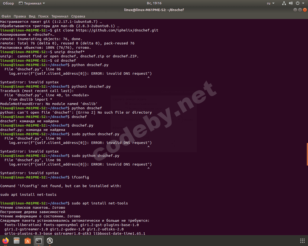 Ошибка запуска dnschef. Vds Ubuntu 16