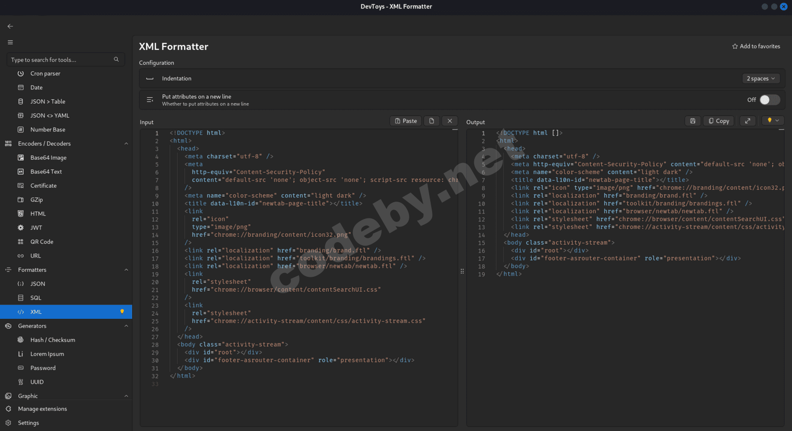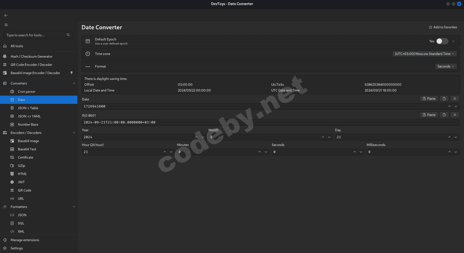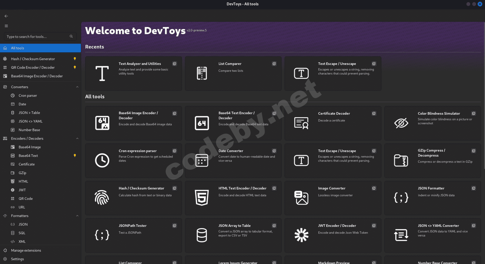 - Кодеры/декодеры: HTML, URL, Base64, GZip, JWT, QR-коды и т.д.