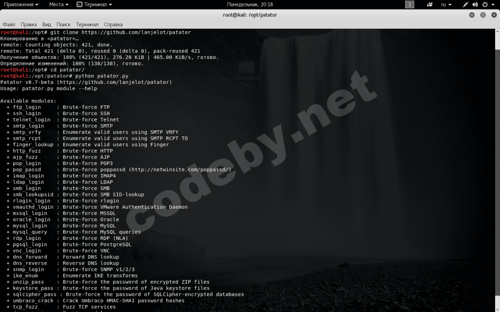 2 выполняю git clone https://github.com/lanjelot/patator