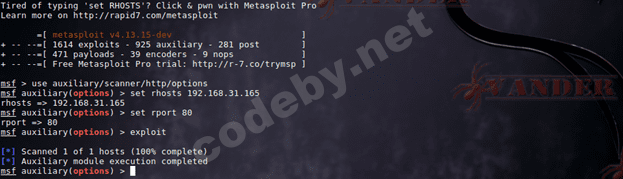 > nmap –script http-methods –script-args http-method.test-all=’/192.168.31.165’ 192.168.31.165