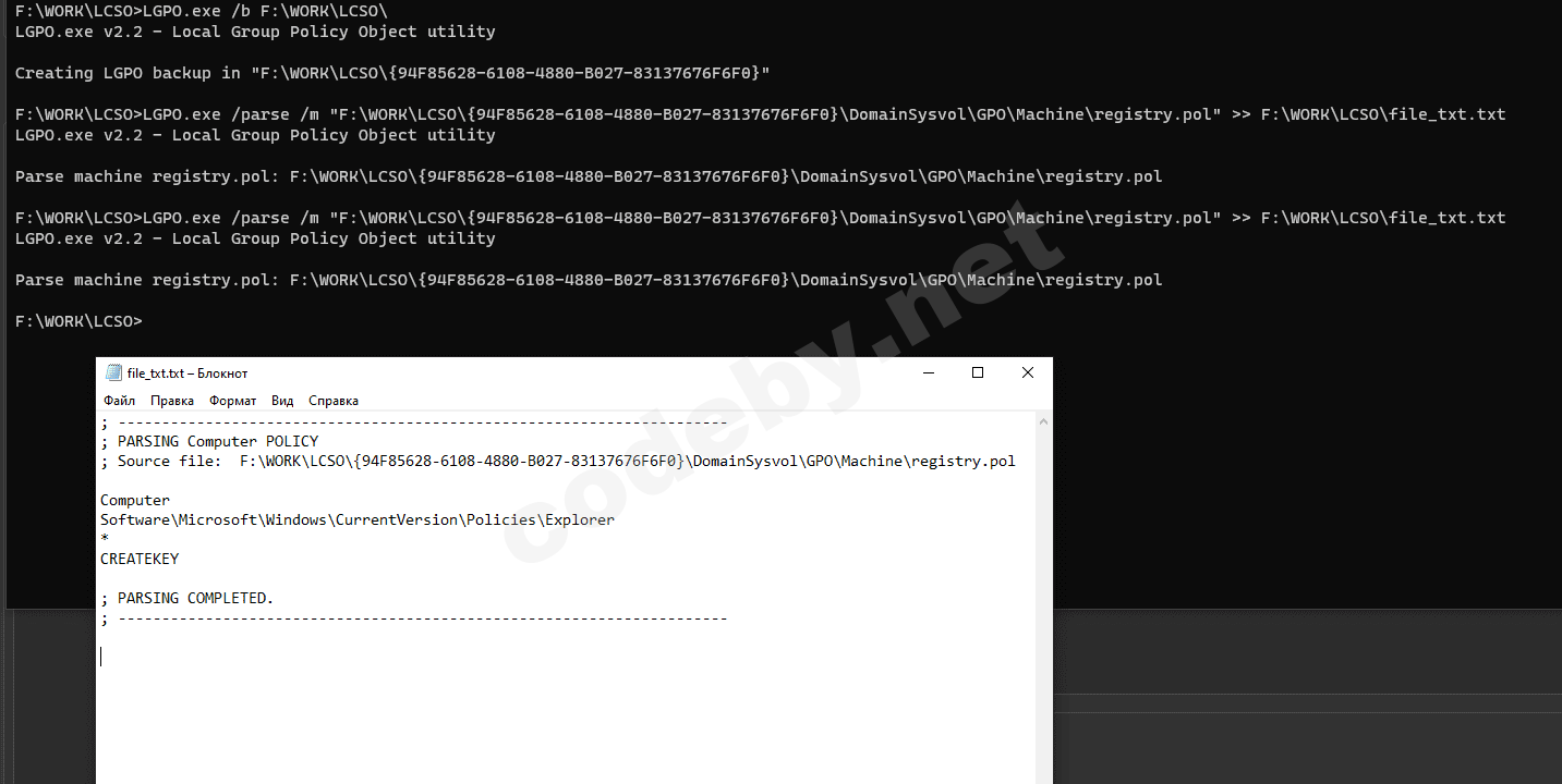 3. Создаем бекап измененного реестра