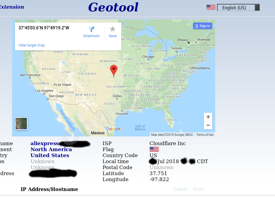 Если воспользоваться браузерным расширением Geotool, а Ip-адрес, который нам демонстрируют-это уже не тот адрес,