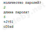 length = int(input('длина пароля?'+ "\n"))