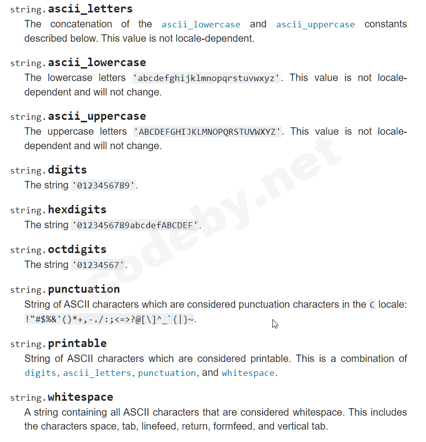 strings = string.ascii_letters + string.digits + string.punctuation