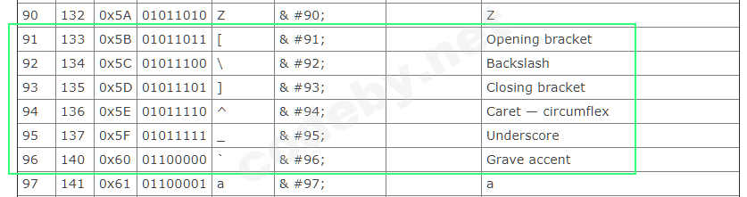special_symbols3 = ([chr(s) for s in range(91, 96)])