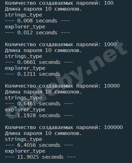 пароли каждый раз разные?рандомные?повторяются ли при большом количестве генераций паролей? и к стати что то исходник показывает мне другую консоль. Пробовал все разные ваши варианты исходников и не получатся генерировать ничего.