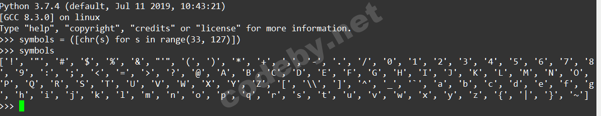 strings = string.ascii_letters + string.digits + string.punctuation