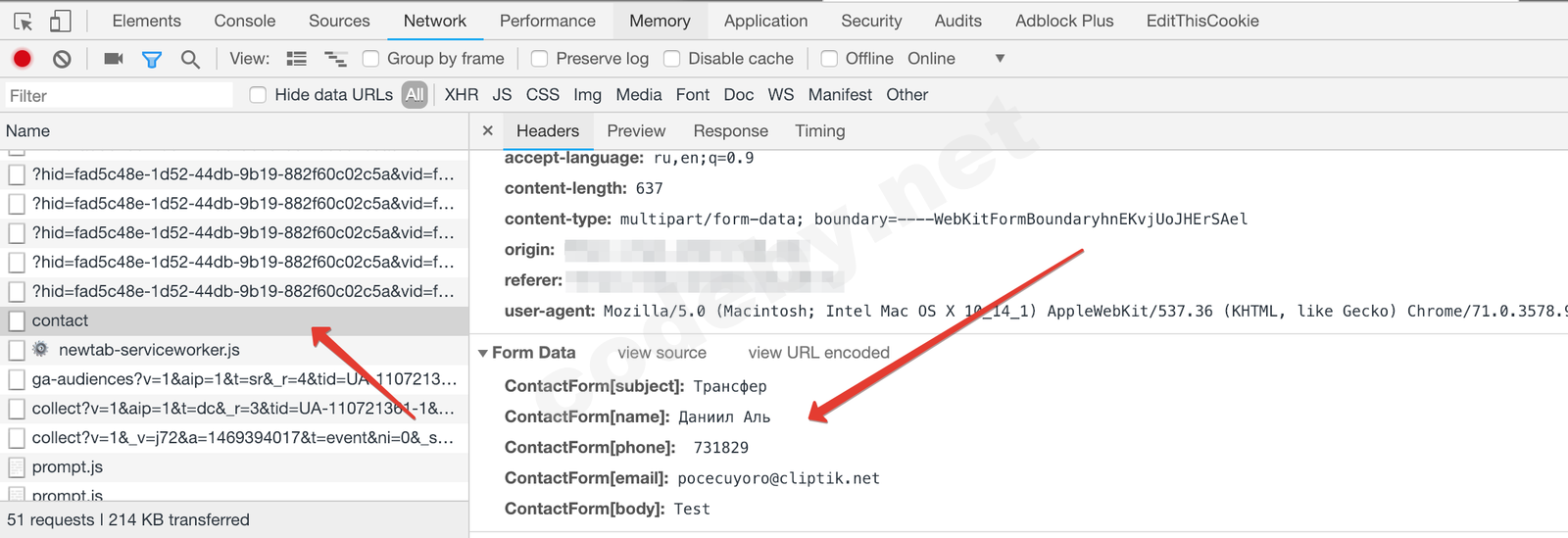 ContactForm[subject], ContactForm[name], ContactForm[phone], ContactForm[email], ContactForm[body]И так на этом сбор данных закончен. Теперь у нас есть все что бы приступить к написанию спамера.