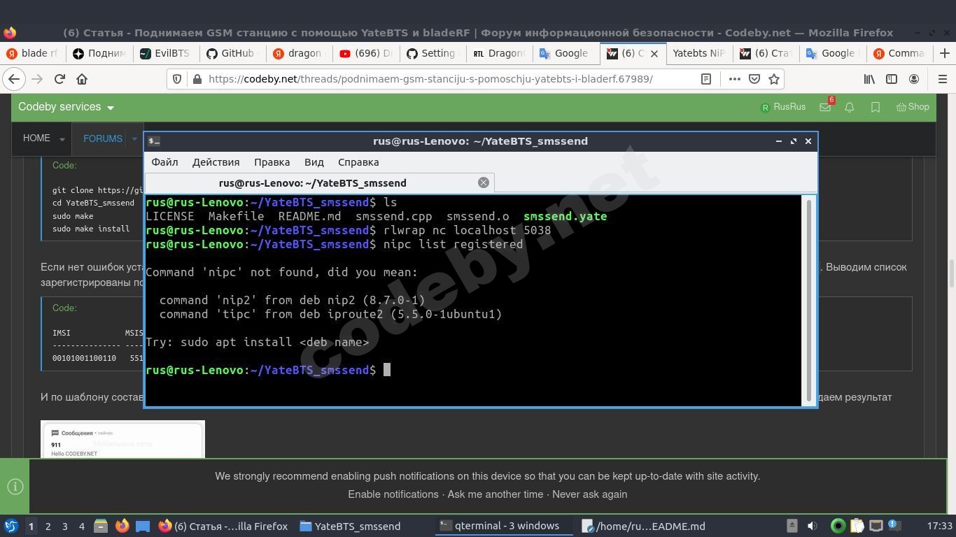 На этом пожалуй закончу. Если вам понравился материал вы можете прочить следующую стать в премиум разделе EvilBTS или подменяем GSM сети с помощью YateBTS и bladeRF ;)