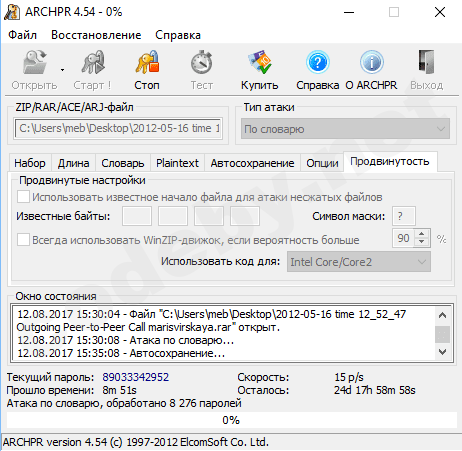 Какой пароль от crark rar файла скаченного с оф.сайта ?попробуй cRARk вчера брутил на gtx1060 выдавало ~26700 p/s.