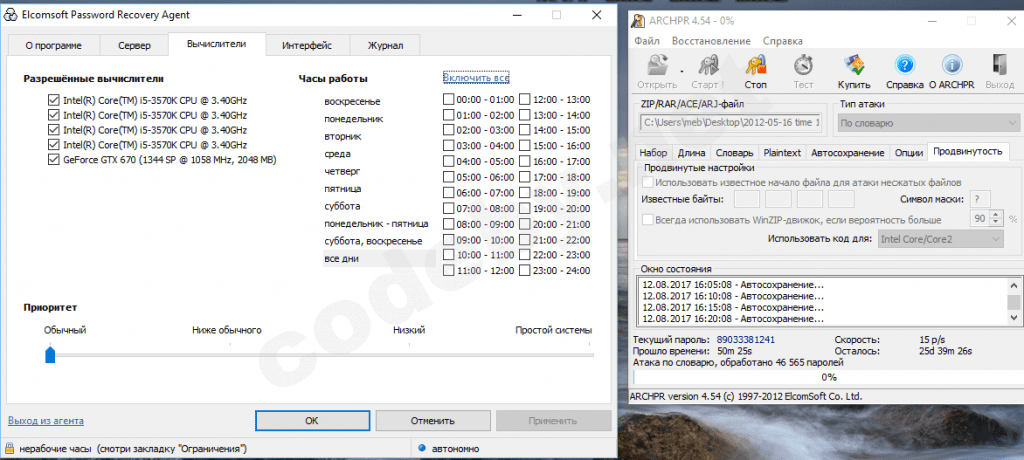 Возможности Elcomsoft Distributed Password Recovery