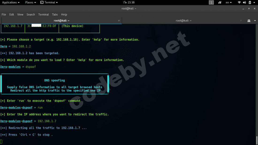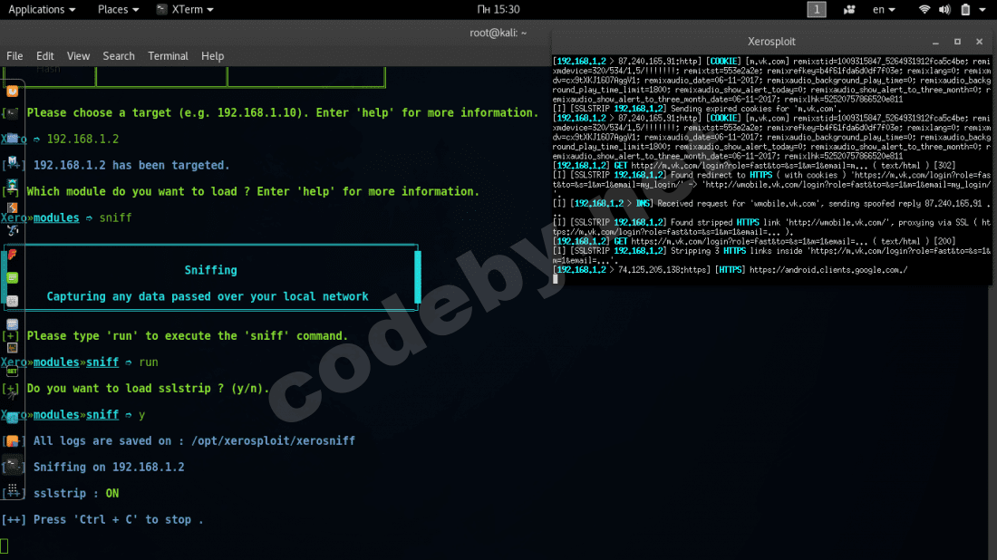 Но перед этим в новой вкладке терминала снова запускаем xerosploit и уже снифаем.