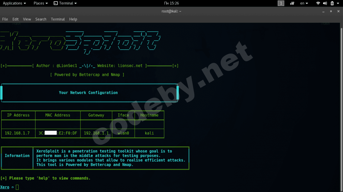 Открываем xerosploit. Сканируем сеть и выбираем жертву. Далее