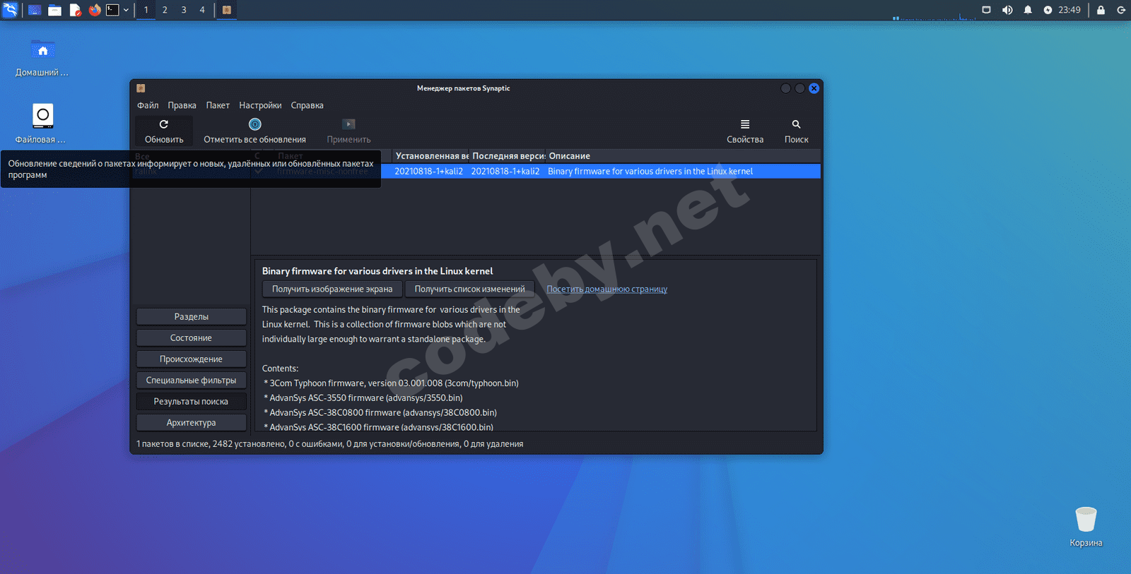 sudo apt-get install synaptic и подтверждаем установку нажимая Yes. После находим его и запускаем введя наш пароль суперпользователя. В самом установщике я вбил в поиск название своего чипа, а именно "ralink" и отыскал один пакет, по всему видимо содержащий уже имеющиеся драйвера для различного вида устройств.Нажав на этот пакет выбираю обновить.