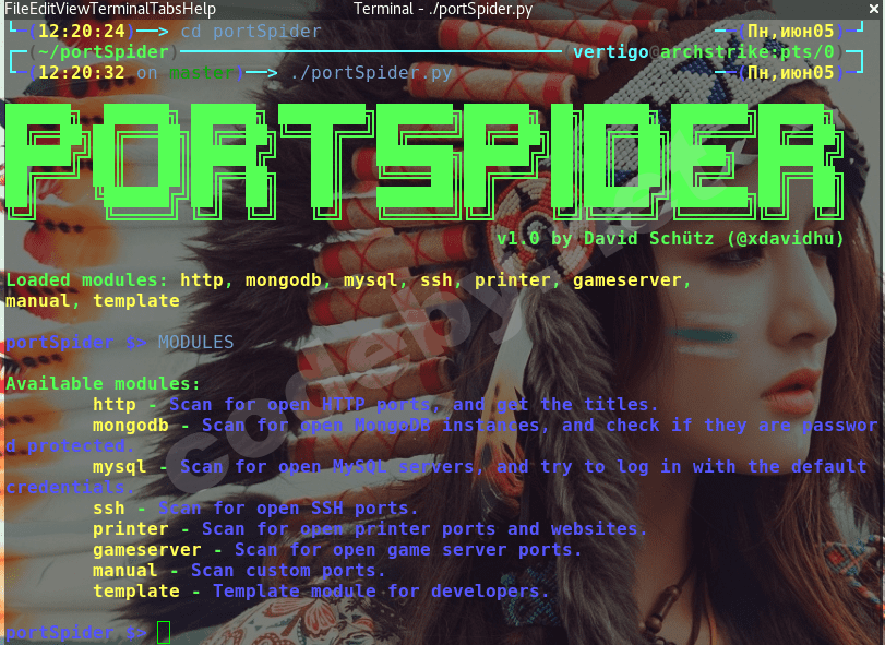 Установка : $ cd portSpider/