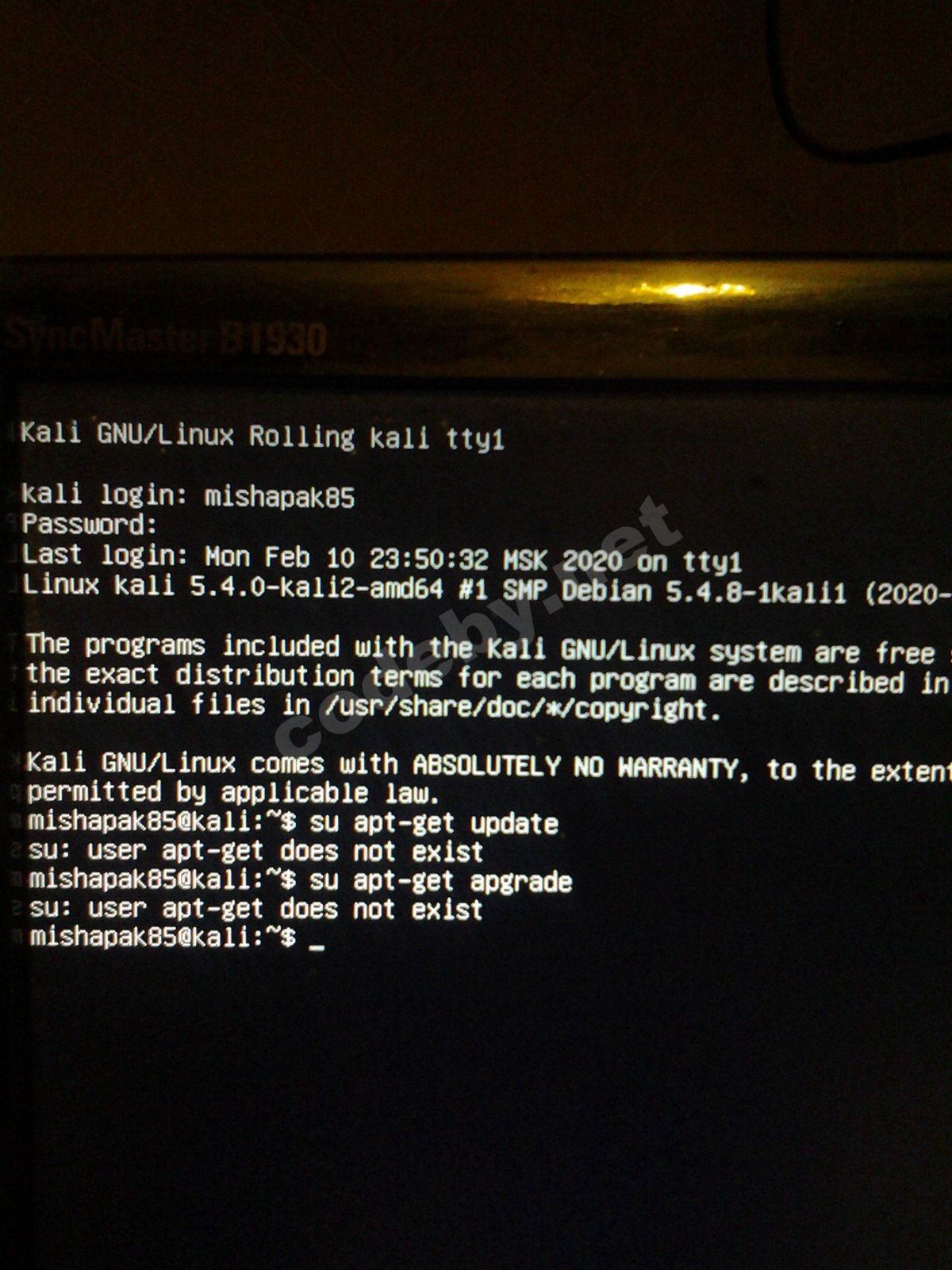 Только установил эту версию кали на 64 . При запуске появляется логотип загрузки и тут же появляется консоль эта , выше перечисленное ввёл