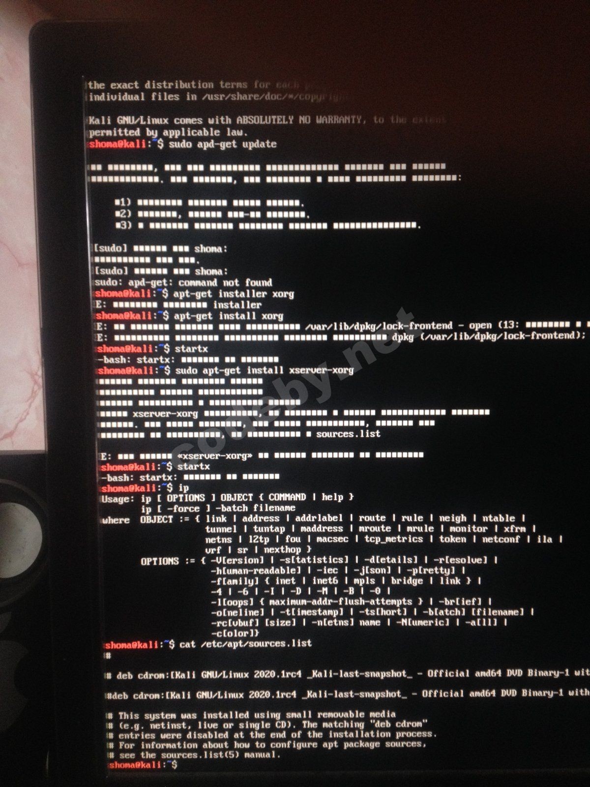 После установки kali linux 2020.1 с флешки не запускается графический интерфейс. Запускается командная строка и просит ввести логин и пароль которые указываешь при установки ос, далее запускается обычная командная строка. Что делать? Помогите пожалуйста. Образ записывал с помощью rufus и пробовал ultra iso.