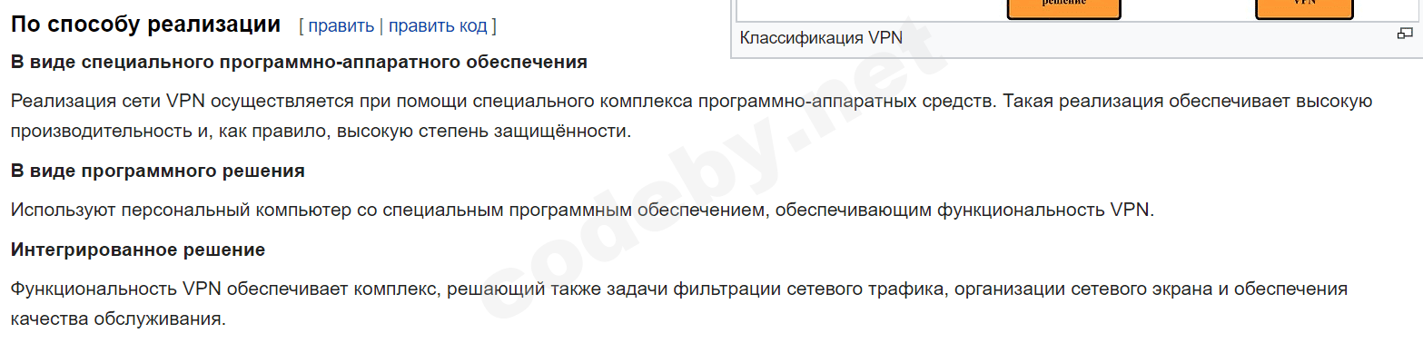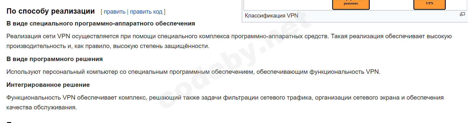 1. В виде специального программно-аппаратного обеспечения. Реализация сети VPN осуществляется при помощи специального комплекса программно-аппаратных средств. Такая реализация обеспечивает высокую производительность и, как правило, высокую степень защищённости.