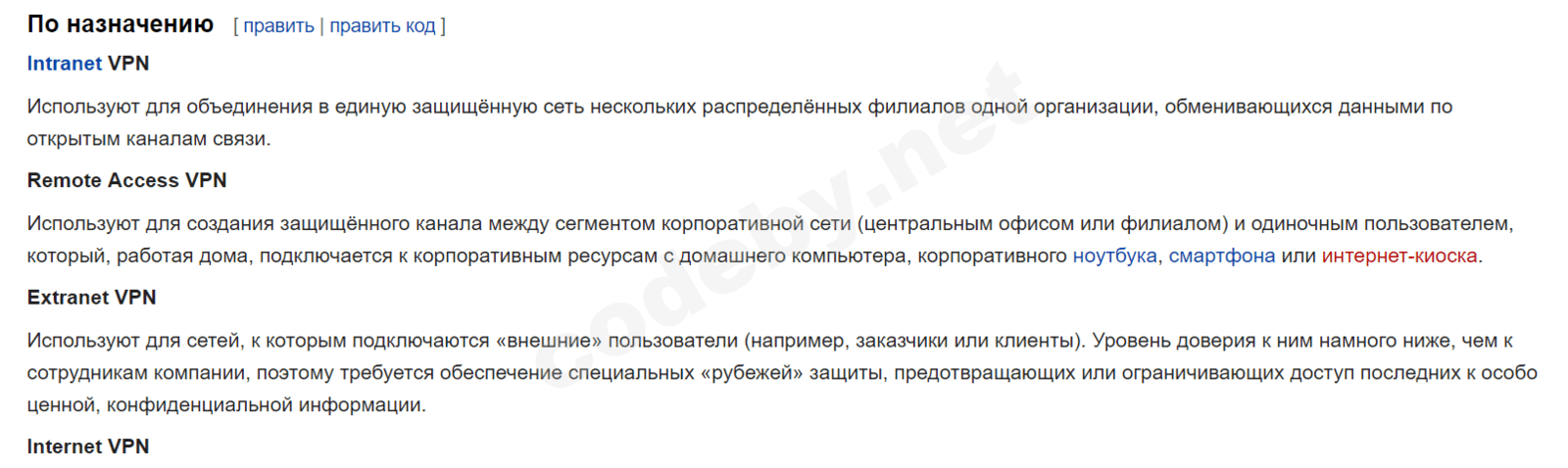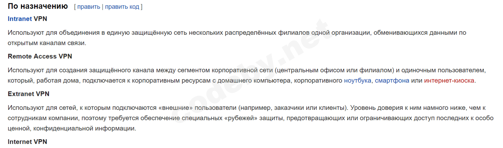 VPN тоже бывает разный. Его виды различают по степени защищённости, по способу реализации и по назначению.