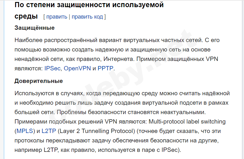 1. Защищённые. Наиболее распространённый вариант виртуальных частных сетей. С его помощью возможно создать надежную и защищенную сеть на основе ненадёжной сети, как правило, Интернета.
