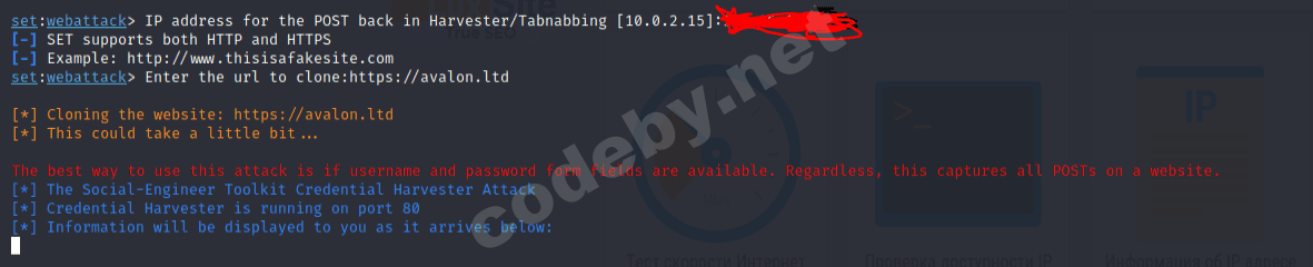 Пытался клонировать vk, faecebook, ok, avito и другие сайты. Ни как не получается, в чем может быть проблема? Может дело в IP? я всегда с VPN сижу в кали. Я ставил разные IP и от своего родного вин10, ничего не менялось. Kali Linux(2020.4) на VirtualBox.