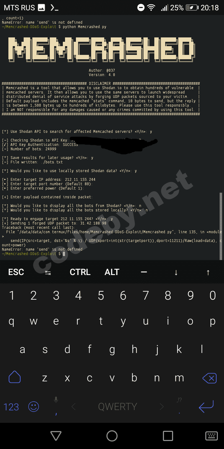 Сразу после подтверждения атаки выходит ошибка что нет переменной send, как исправить ошибку, все необходимые модули установил