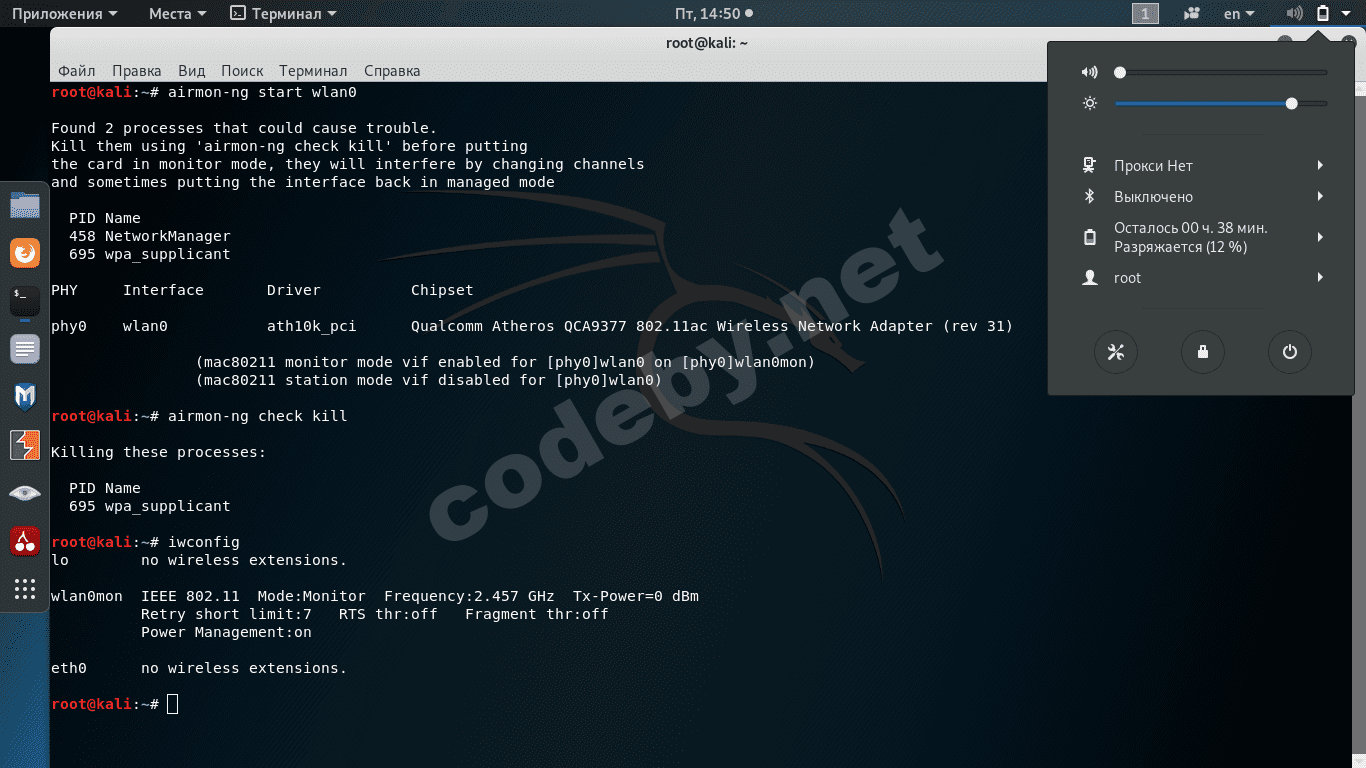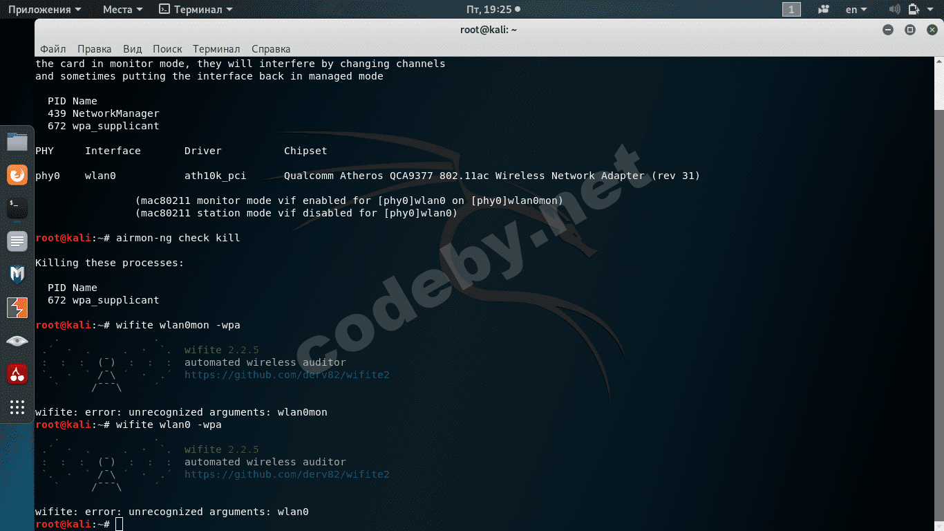 Доброго времени суток всем. У меня такая проблема: wifi карта без проблем переводится в wlan0 режим(airmon-ng start wlan0). Но не находит сети wifi при запуске таких скриптов как airodump, wifite и тд. Как можно решить данную проблему? Модель карты Qualcomm Atheros QCA9377 802.11ac Wireless Network Adapter (rev 31). Заранее спасибо.