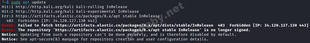 Error: Failed to fetch https://artifacts.elastic.co/packages/8.x/apt/dists/stable/InRelease 403 Forbidden [IP: 34.120.127.130 443]