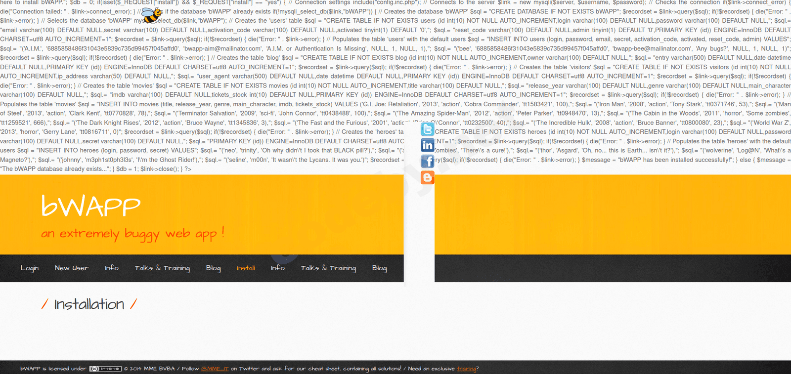 Потому что код bWAPP устарел. Я вручную в своё время правил mysql чтобы всё работало, нужно писать везде mysqli и т.п.Кто чем может помочь? mysql и apache2 стоят последней версии,но по всей видимости проблемы именно с mysql,хотя фиг знает