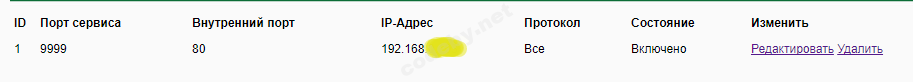 2) делаем проброс 80 порта на порт 9999 ( 80 это локальный и 9999 внешний )