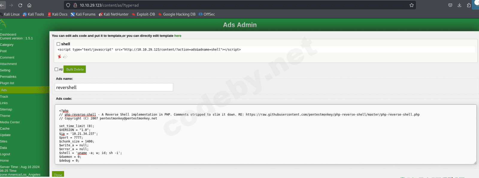 Воспользуемся revershell generator, очень полезный сайт с шеллами разных мастей. И очень удобный так как подставляет все значения сам.