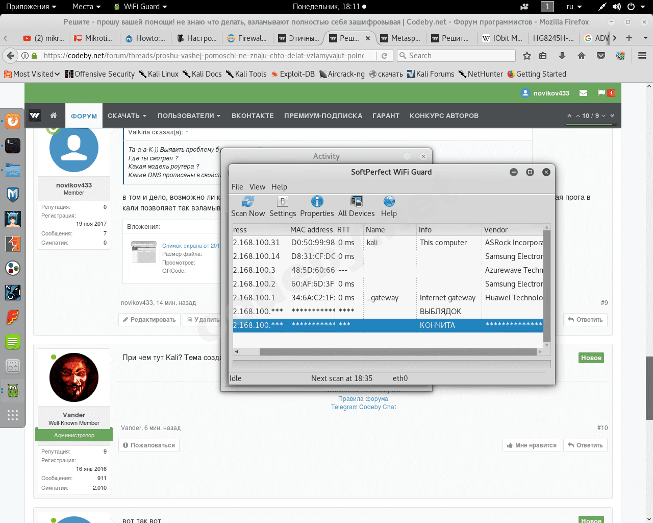 [doublepost=1511801523,1511801072][/doublepost]так, ситуация предоставляет такой характер - теперь, они отключились, и что я вижу! они оказывается все устройства в сети от роутера взломали - 2 скрина снизу. у меня появляется встречный вопрос - как так же можно взламывать, если даже закрыты порты? и как вобще так взламывать чужой роутер и все устройства внутри сети роутера НА РАССТОЯНИИ ? -это вобще как называется mac + ip spoofing, или это разновидность dns спуфинга с такой подменой?