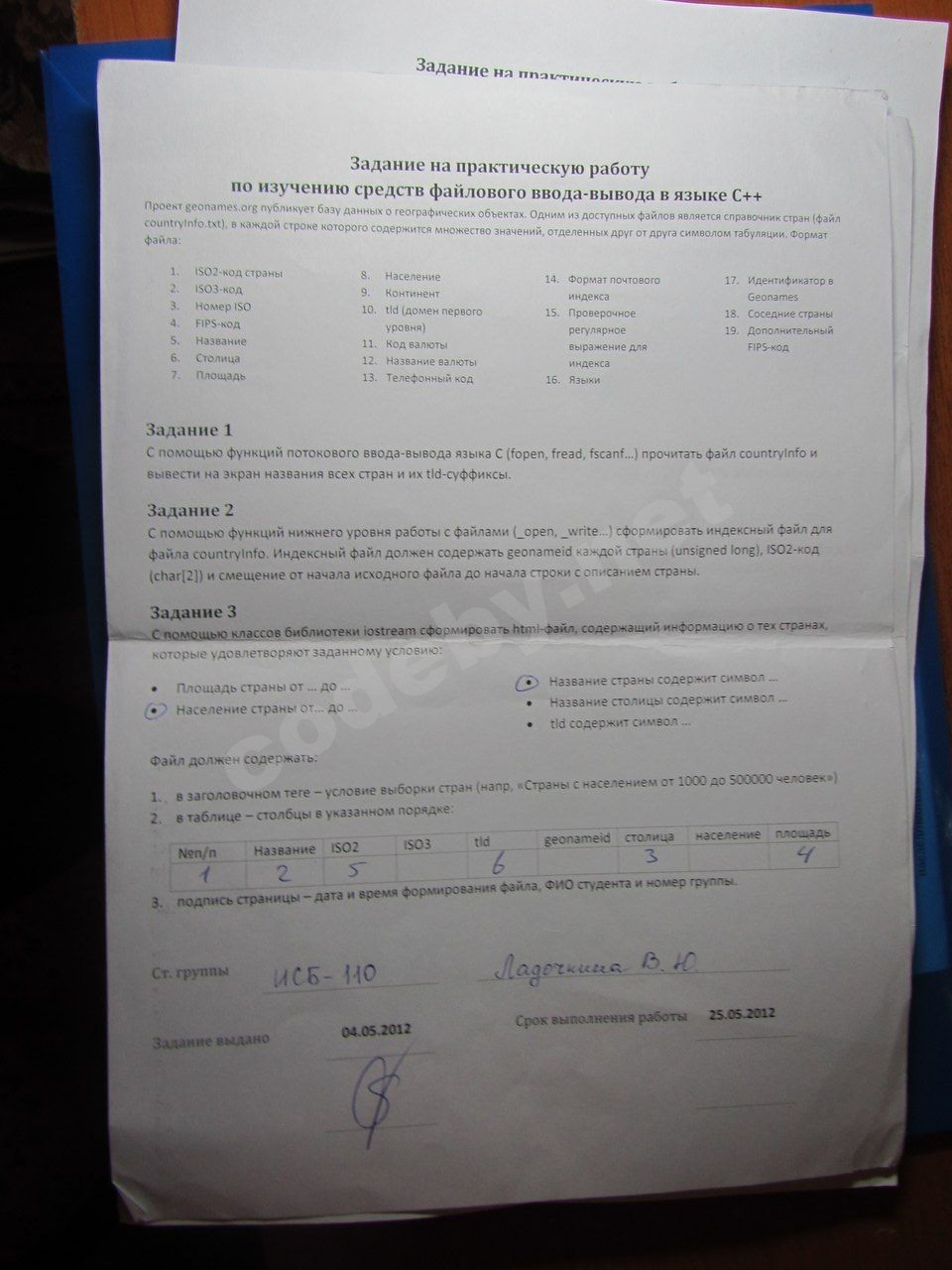 А еще, посмотрите на заголовок бумажки (которая прикреплена к первому сообщению), там сказано про "изучение средств файлового ввода-вывода С++" и на текст первой задачи: "ввода-вывода языка С (fscanf, fread,...)" как то нихрена не сходится.