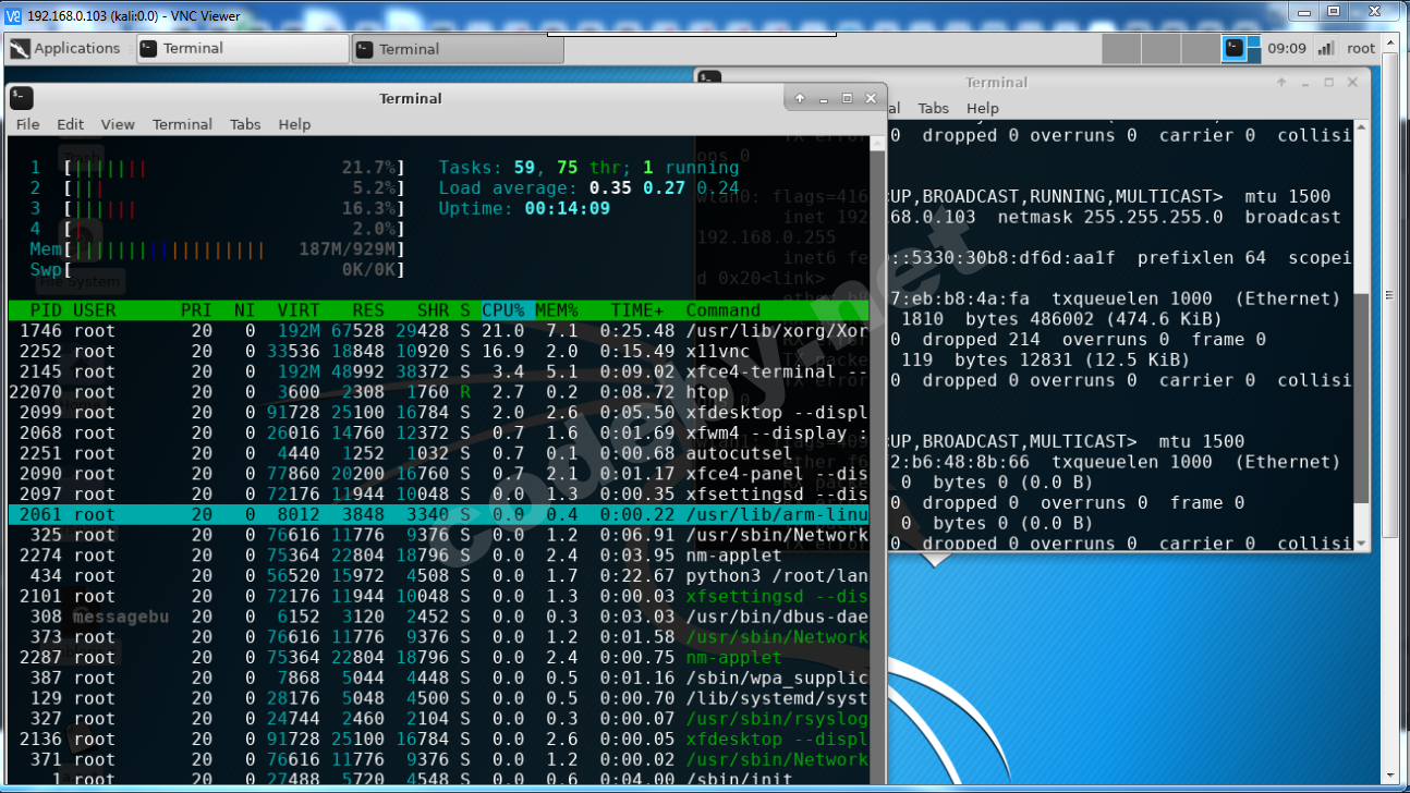 Далее пишем в терминале kali linux по vnc