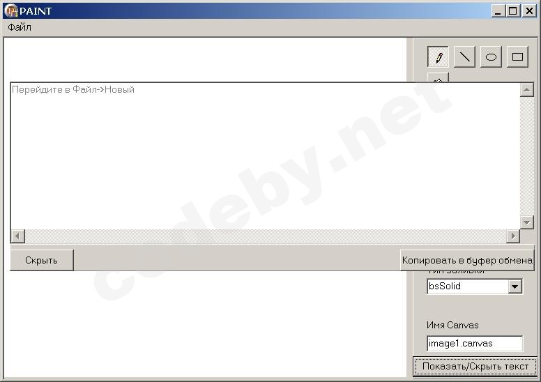 Вообшем вот переделаная рисовалка(изначальный автор link removed, ссылка на тему), рисуем, в memo выводится код для вставки в прогу, возможна некоретная работа кода в проге из-за другого размера изобрежения.
