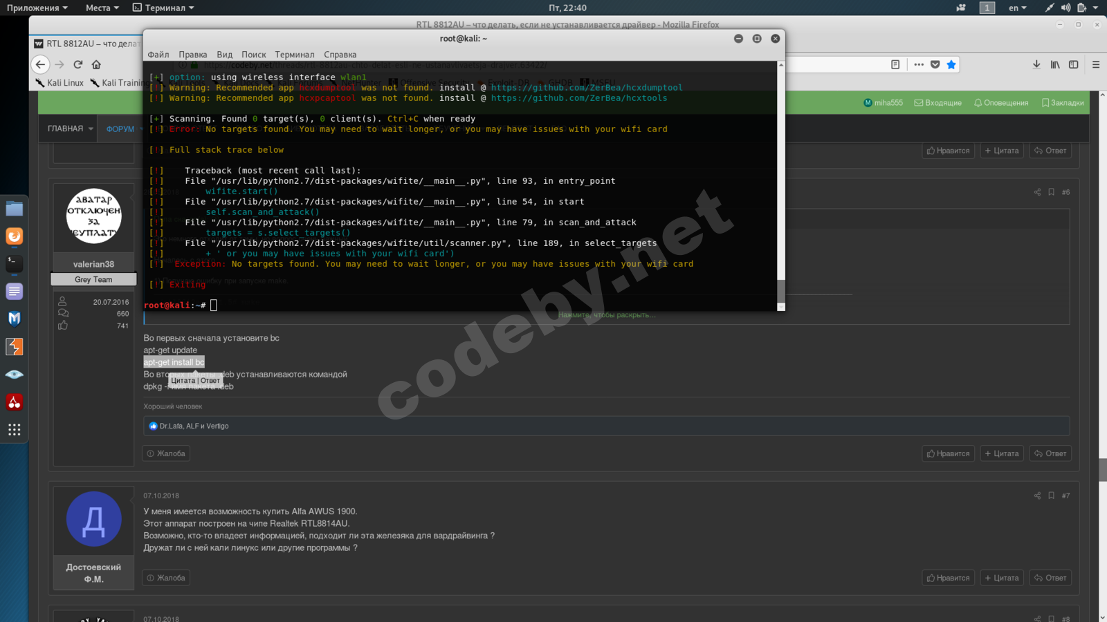Kimocoder этот в общем молодец, сначала он делал драйвера под этот чипсет для Arch, потом стал делать для Debian. Разработчики Kali просто включают его драйвер в репозиторий, начиная с Rolling 2017.1 не особо заботясь о работоспособности и совместимости драйвера с другими продуктами.