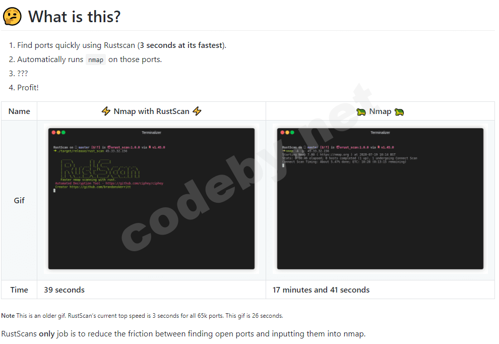 Не говоря уже о том, что RustScan использует Adaptive Learning, чтобы совершенствоваться по мере использования.