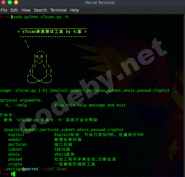 usage: python s7scan.py [-h] {exploit,webdir,portscan} ... webdir