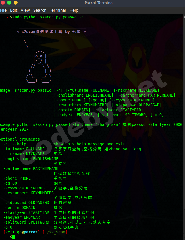 example:python s7scan.py passwd -fullname 'zhang san' или passwd -startyear 2000