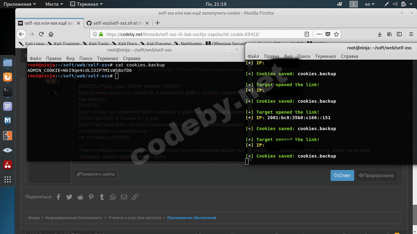 Злоумышленник получает данные IP-адреса,User-Agent и Cookie жертвы.