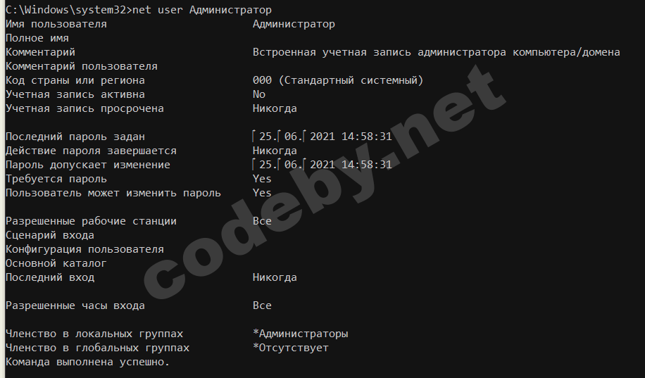 >net user Администратор