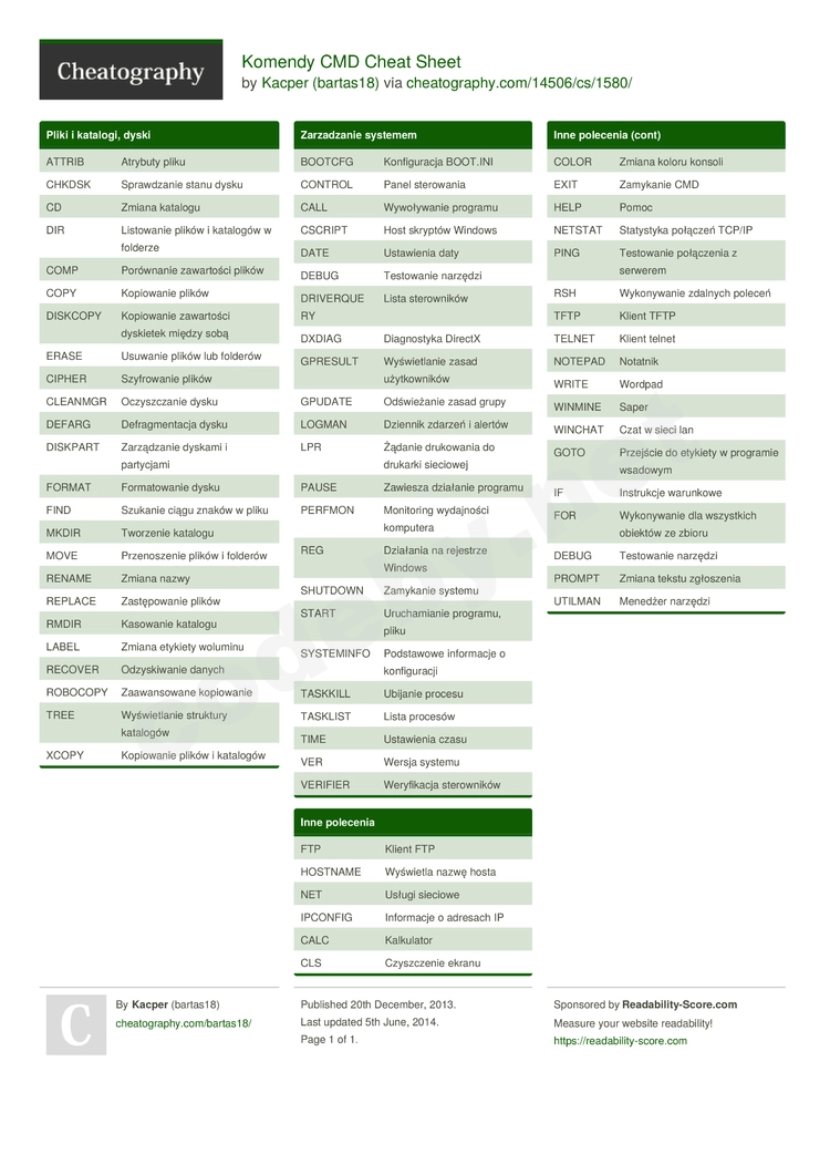 В данной статье я по просьбе коллег решил написать шпаргалку к командной строке windows CMD. Текущую, как и предыдущую мои статьи не плохо хранить где-то под рукой. Я умышленно не стал подробно расписывать все ключи и действия которая может выполнить каждая команда иначе из шпаргалки получиться полновесный RTFM который не как Вам не поможет. Для тех кому требуется к каждой команде развернутое описание и возможные ключи для исполнения направлю на горячо любимый сайт Майкрософт.