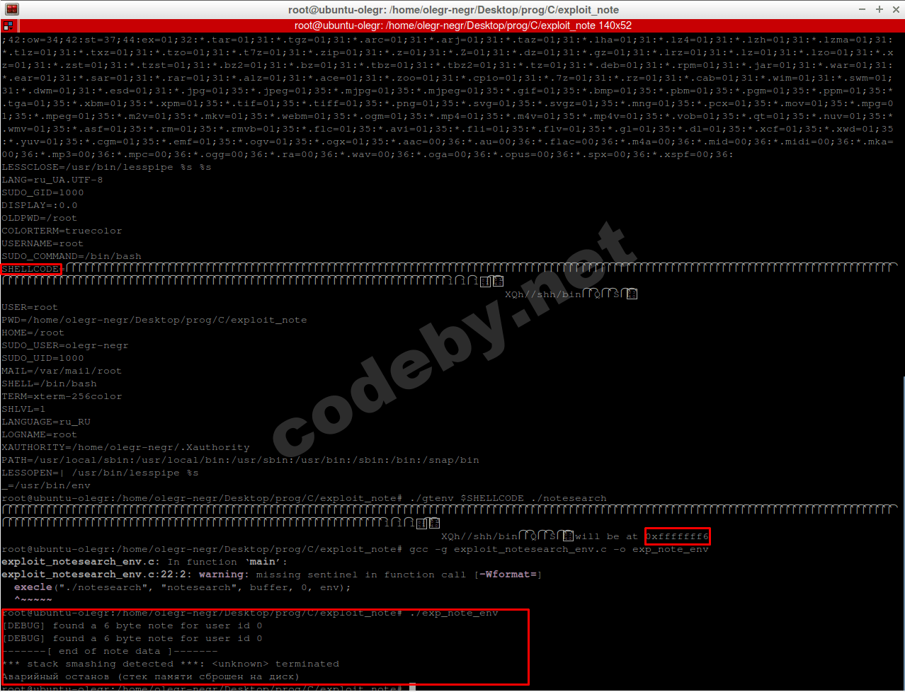 Помогите мне с шеллкодом. Я полный новичок и только начал изучать пентест. Я работаю по этой книге(HACKING ТНЕ ART OF EXPLOITATIO второе издание) и дошёл до этой темы: "Работа с окружением". И вот тут у меня появились проблемы... Материал я хорошо понял и всё вроде бы правильно сделал(файл прикрепил), но вот у меня пишет данную ошибку(скрин). Можете мне, пожалуйста, посоветовать хорошие книги для новичков, дать советы+ответить на некоторые вопросы: