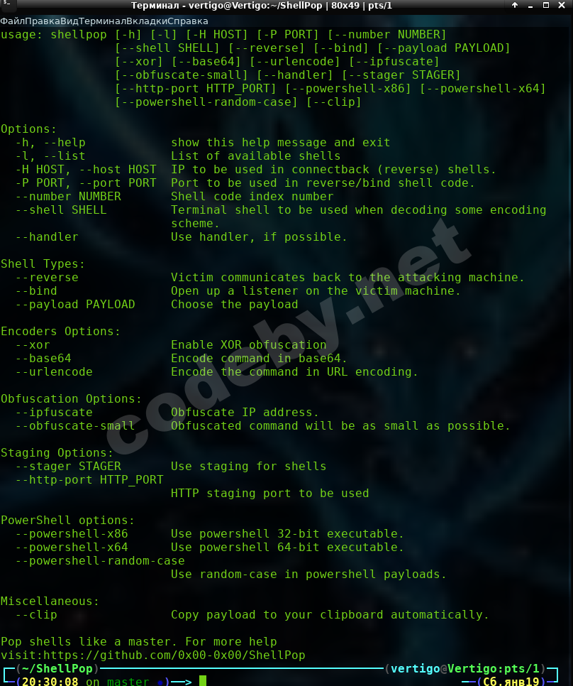 # shellpop --help -команда справки