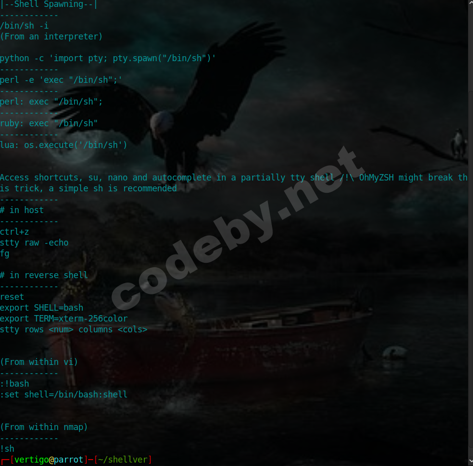 Создал его 0xR0 для шпаргалки по написанию различных видов reverse-shell.