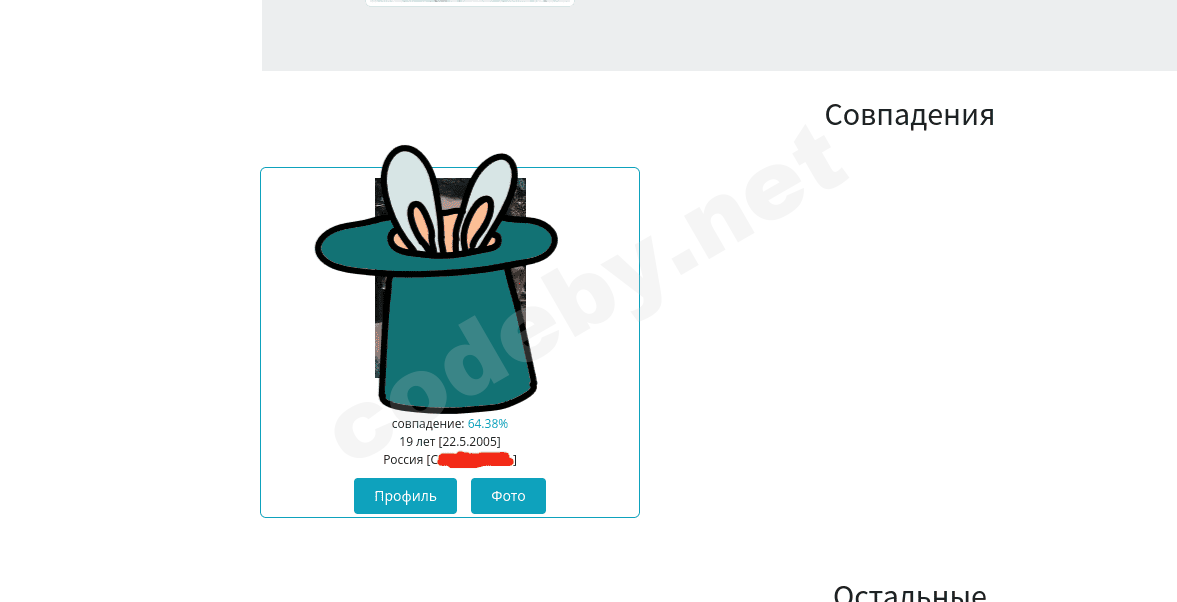 Теперь разберёмся с пользователем D. Итак, нам известно что он живёт в городе С. А ещё нам известно как он выглядит, за это мы и зацепимся! Для того чтобы найти человека по фото, можно воспользоваться условно бесплатным FindClone и бесплатным search4faces. Загружаем на ресурс фото и смотрим результат.