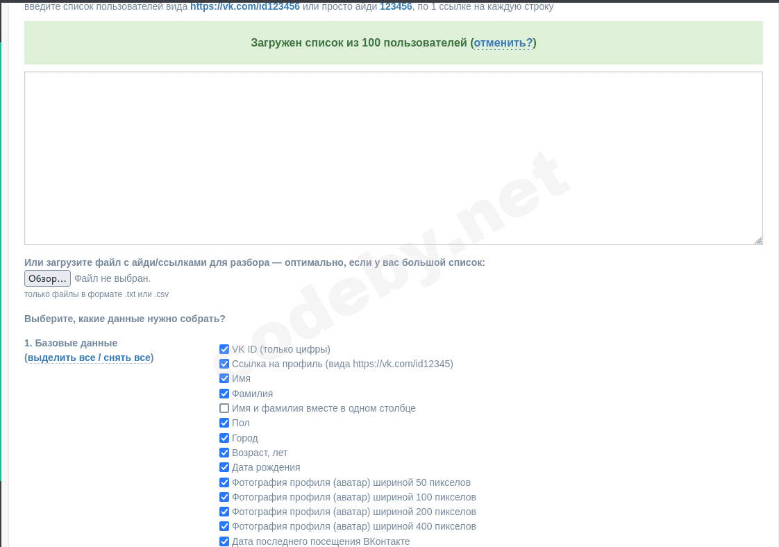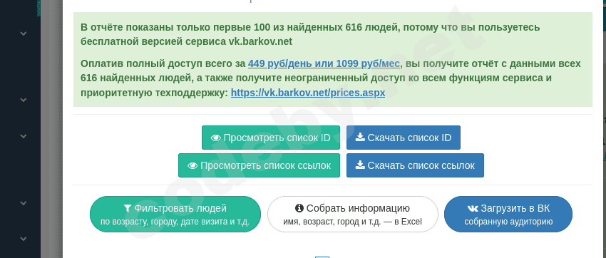 Для сбора полной информации по друзьям цели, нужно будет зайти в раздел Пользователи/Друзья и подписчики. В поле для заполнения ввести ссылку на пользователя и нажать на “Cобрать друзей/подписчиков из личных страниц”.