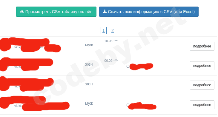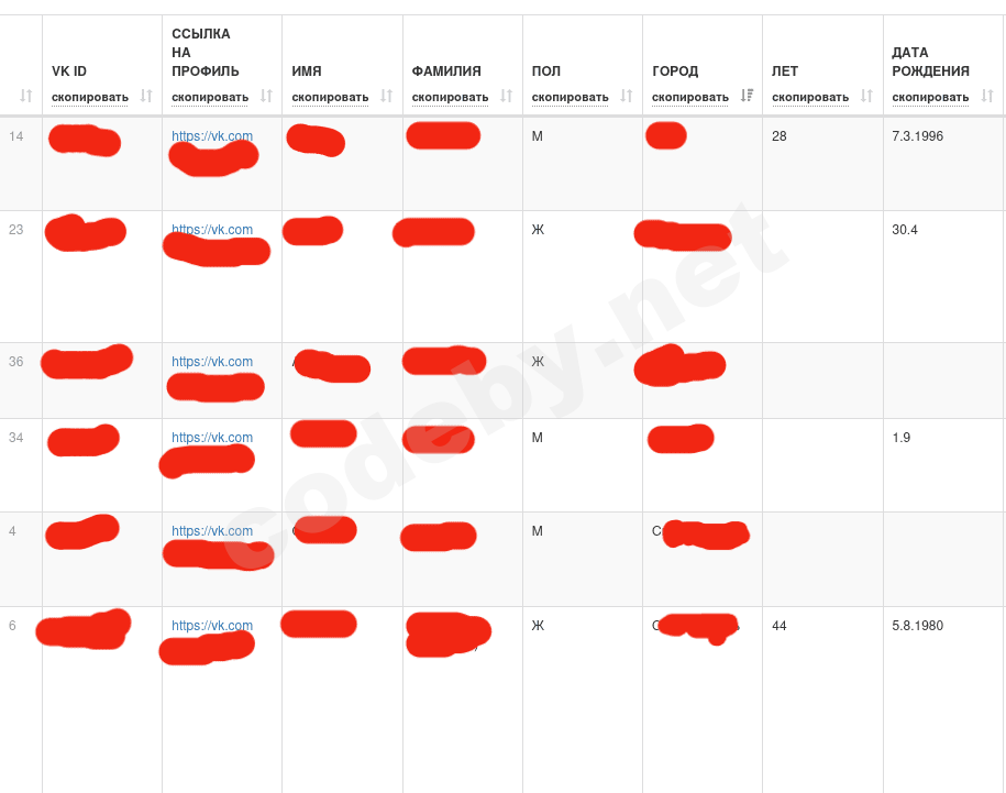 Далее таблицу которую для нас подготовили можно скачать или посмотреть онлайн. Я перейду в онлайн просмотр и отфильтрую пользователей по интересующему городу С. Конечно пользователей всё ещё достаточно, но зато меньше чем бы мы искали через сам ВКонтакте.