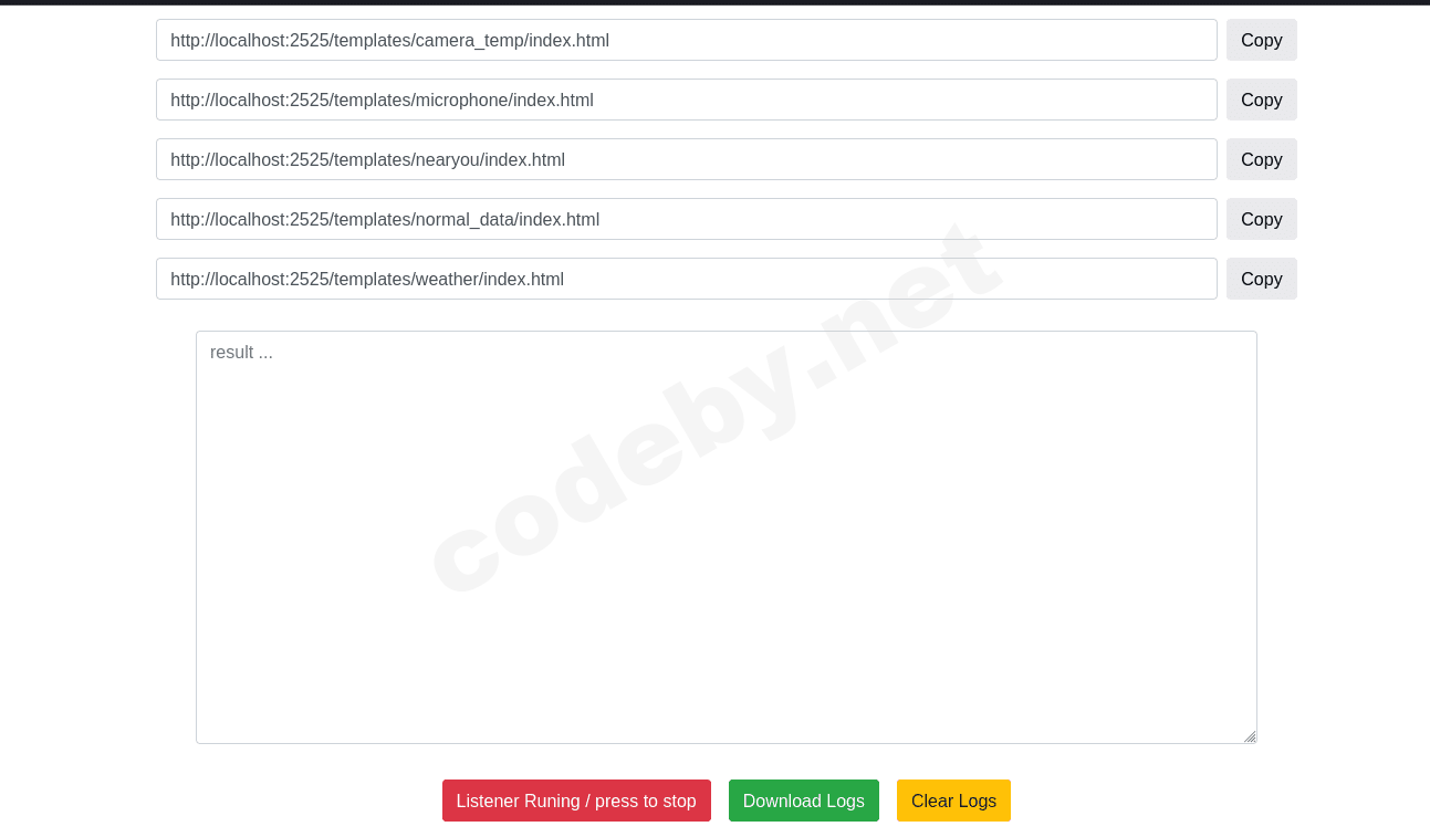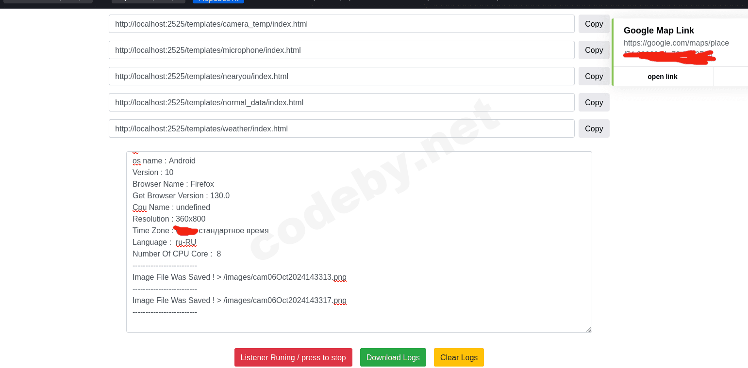 И здесь у нас на выбор 5 ссылок для отслеживания: камеры, микрофона, местоположения или просто логгер.